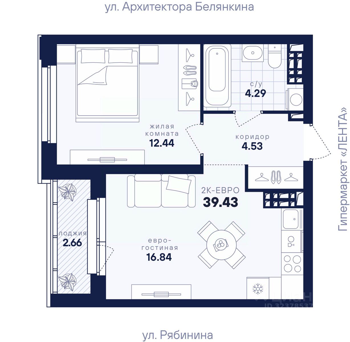 Общая площадь39,43 м2