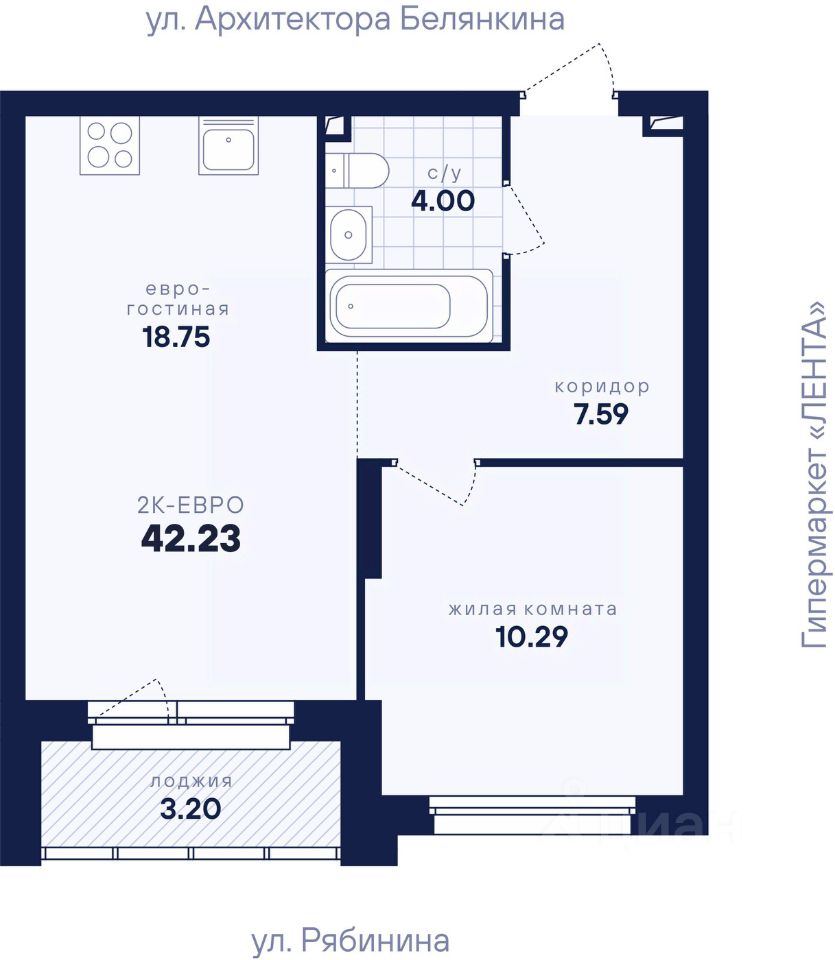 Общая площадь42,23 м2