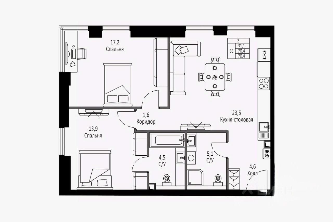 Предлагаем вашему вниманию уютную двухкомнатную квартиру площадью 72 м² с панорамными окнами и впечатляющим видом на парк и усадьбу.