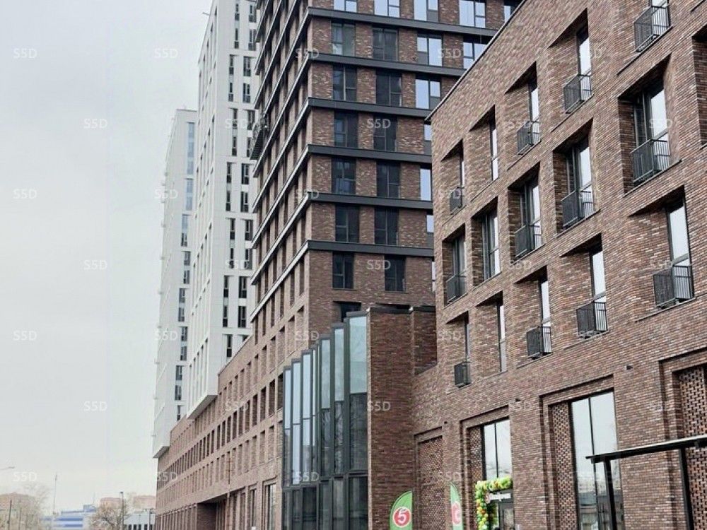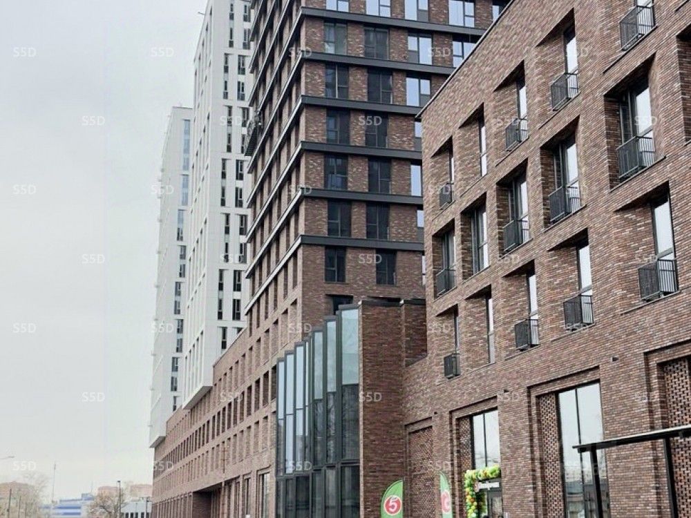 Технические характеристики: Общая площадь помещения 348 м2, 1 этаж. Несколько отдельных входов. Витринные окна. Высокие потолки с возможностью обустройства антресоли 4,9 м. Электрическая мощность по запросу. Центральные коммуникации (ГВС / ХВС, канализация, отопление). На подземном уровне ЖК есть паркинг на 140 мест с автомойкой и станциями для электрокаров.