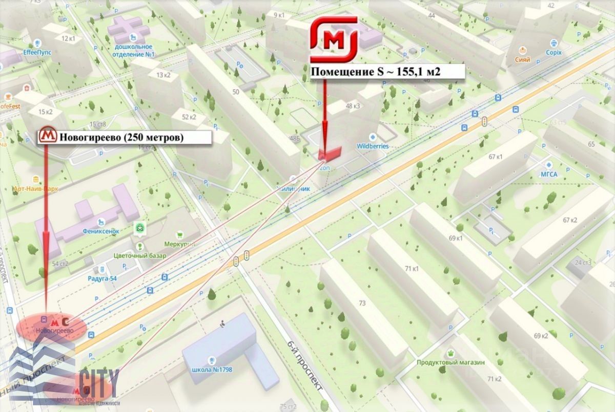 В продаже нежилое помещение с магазином Магнит, расположенный в непосредственной близости от метро Новогиреево. Помещение общей площадью 158 кв.м., первая линия по Зеленому проспекту. Помещение подключено ко всем коммуникациям, заключены договора, разрешенная мощность 35 кВт. Коммерческие условия по аренде: МАП-390000, РТО-4%, индексация по соглашению сторон-5%.
