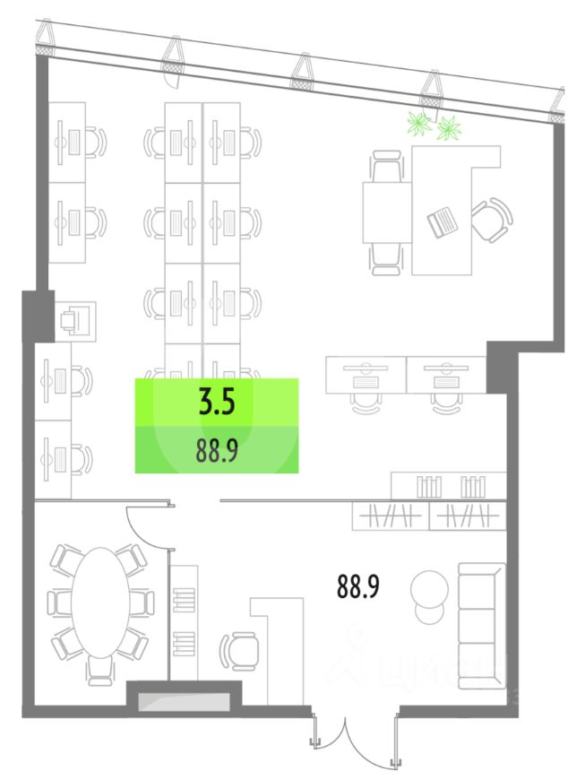 *Количество рабочих мест рассчитано автоматически: от 4,5 м2 на человека до 8 м2 на человека.
