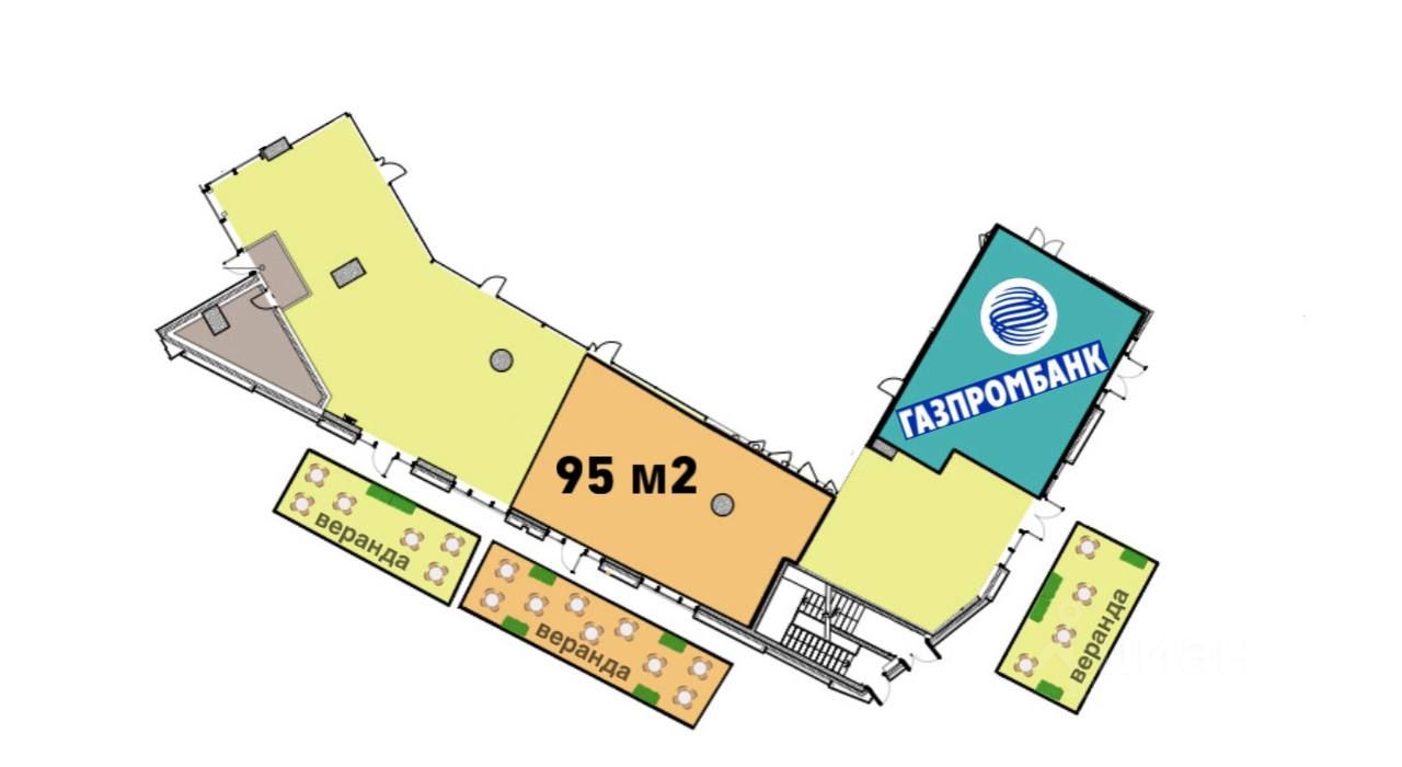 Объект площадью 95 м2 на 1 этаже. Высокие потолки-6 м, витринное остекление в пол, свободная планировка, все коммуникации центральные, мощность по запросу. Есть место для просторной летней веранды, на фасаде предусмотрена возможность размещения рекламы.