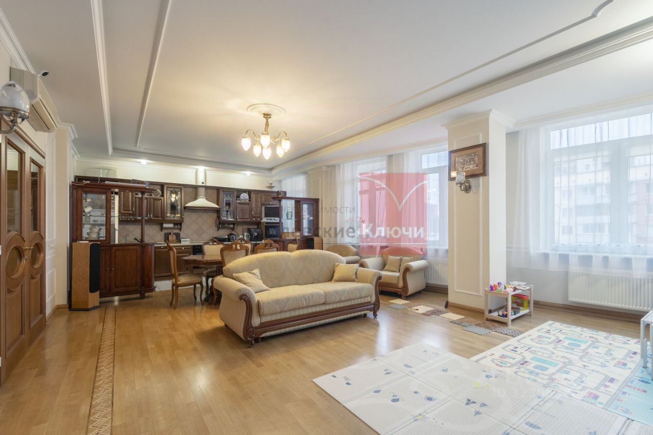 В гостиной итальянская мебель и текстиль (все стулья и диваны выполнены в едином стиле ), зеркало и конcоль в прихожей, обеденный стол и стулья из массива с премиальной техникой: (варочная панель, духовой шкаф, посудомоечная машина- AEG) холодильник - Liebherr. кофемашина-Saeco. Телевизоры - плазма+DVD система+5 колонок + ТВ декодер- Fujitsu+Denon.