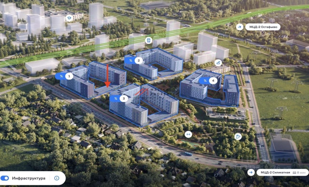 ЖК насчитывает 5 000 жителей. В жилом комплексе дефицит коммерческих помещений. Нет ограничений для получения алкогольной лицензии. Ввод в эксплуатацию 4 кв. 2025 г.