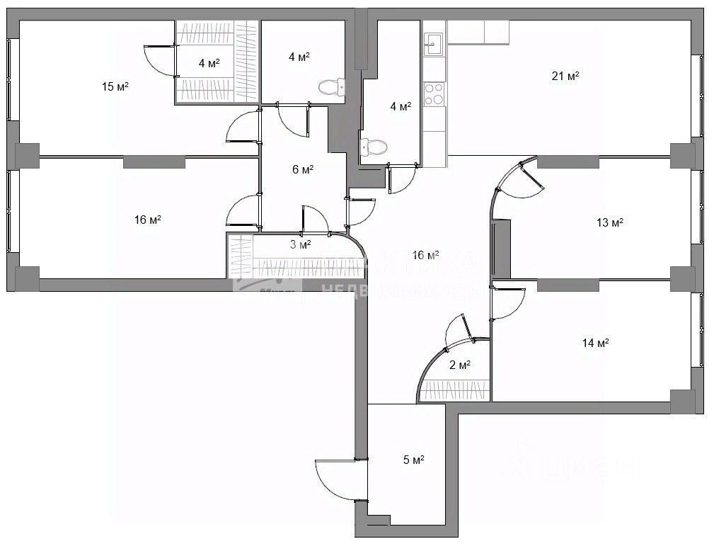Квартира зонирована на две части. В общей части находится удобная прихожая 6 м², просторный холл 16 м², кухня-гостиная 24м², два кабинета 13 и 14 м², полноценный санузел 4м² и кладовая 2м². В приватной части - две спальни 16 и 18м², в последней выделена гардеробная 4м², полноценный санузел 4м² с подогревом пола и кладовая комната 3м². Большое наличие выделенных мест хранения позволяет не заставлять квартиру шкафами и сохранить ощущение большой просторной светлой квартиры. Потолки 2,75 см. Квартира распашонка, окна спален выходят во внутренний тихий двор, остальные - на жилой квартал и улицу. Свежий ремонт. На полу в прихожей, холле и гостиной уложен керамогранит, в остальных жилых помещениях качественный ламинат.