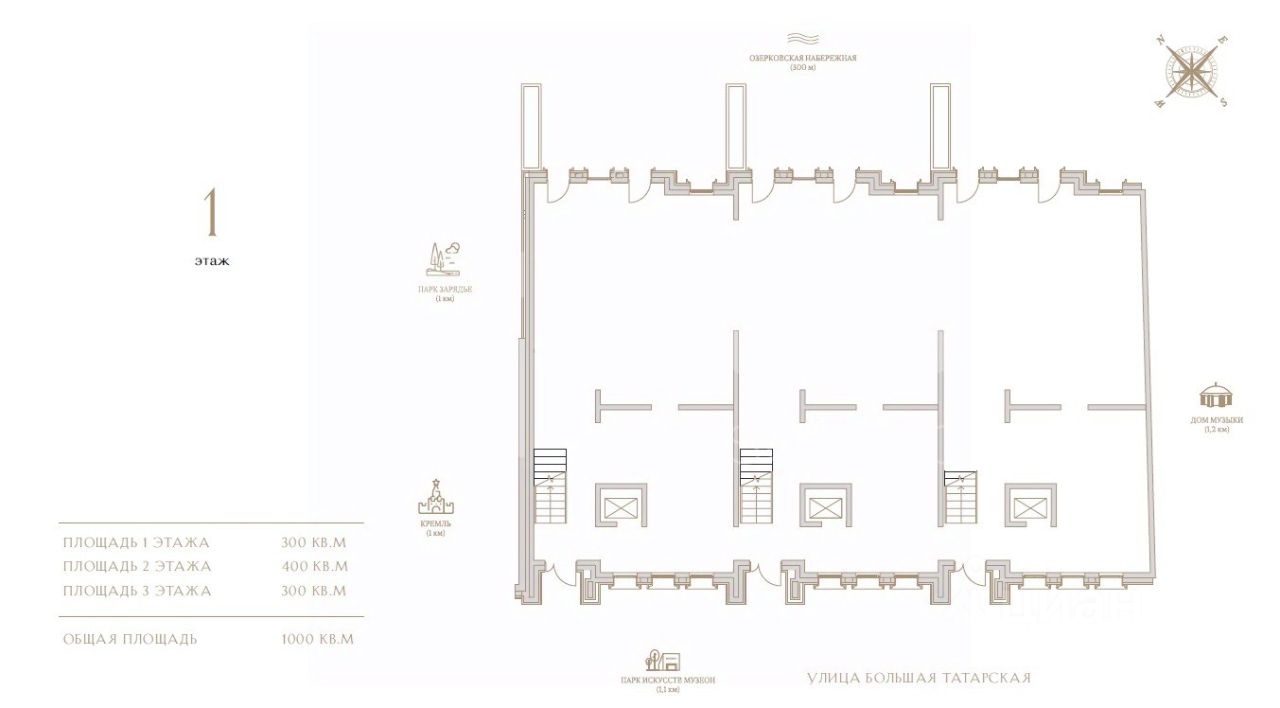Продажа офиса 1000 кв.м на 1-3 этаже в особняке ''Большая Татарская улица, 21'' по