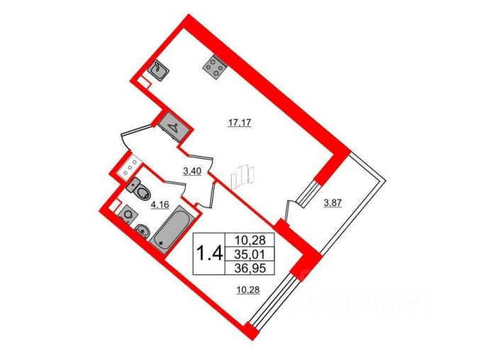 Кухня17,2 м2