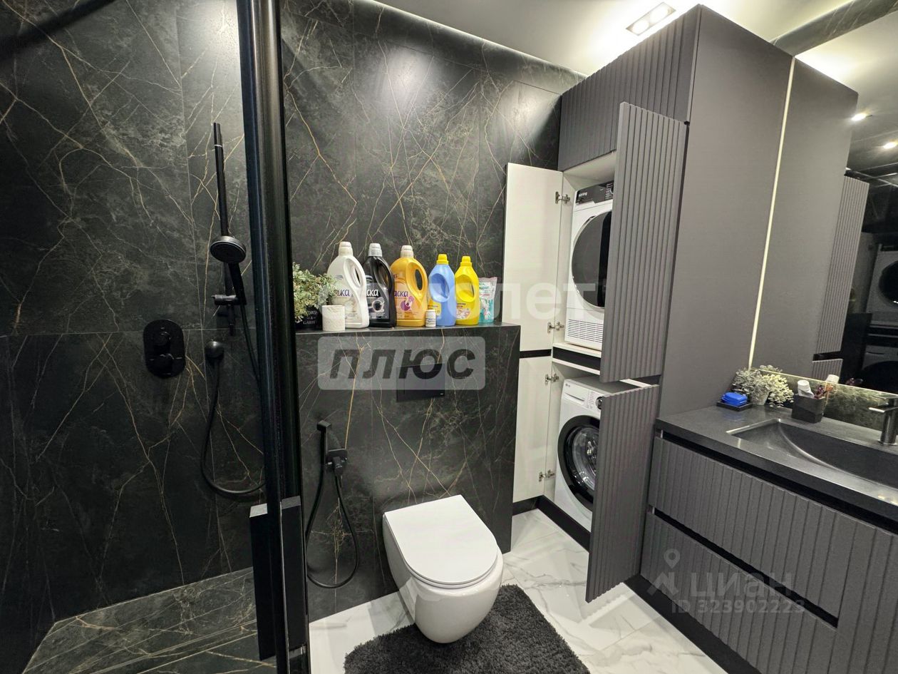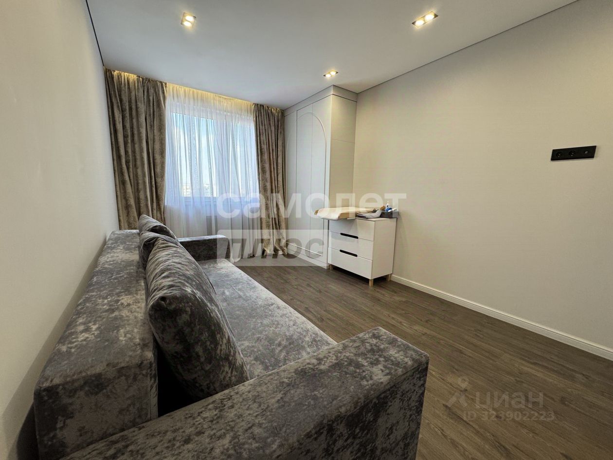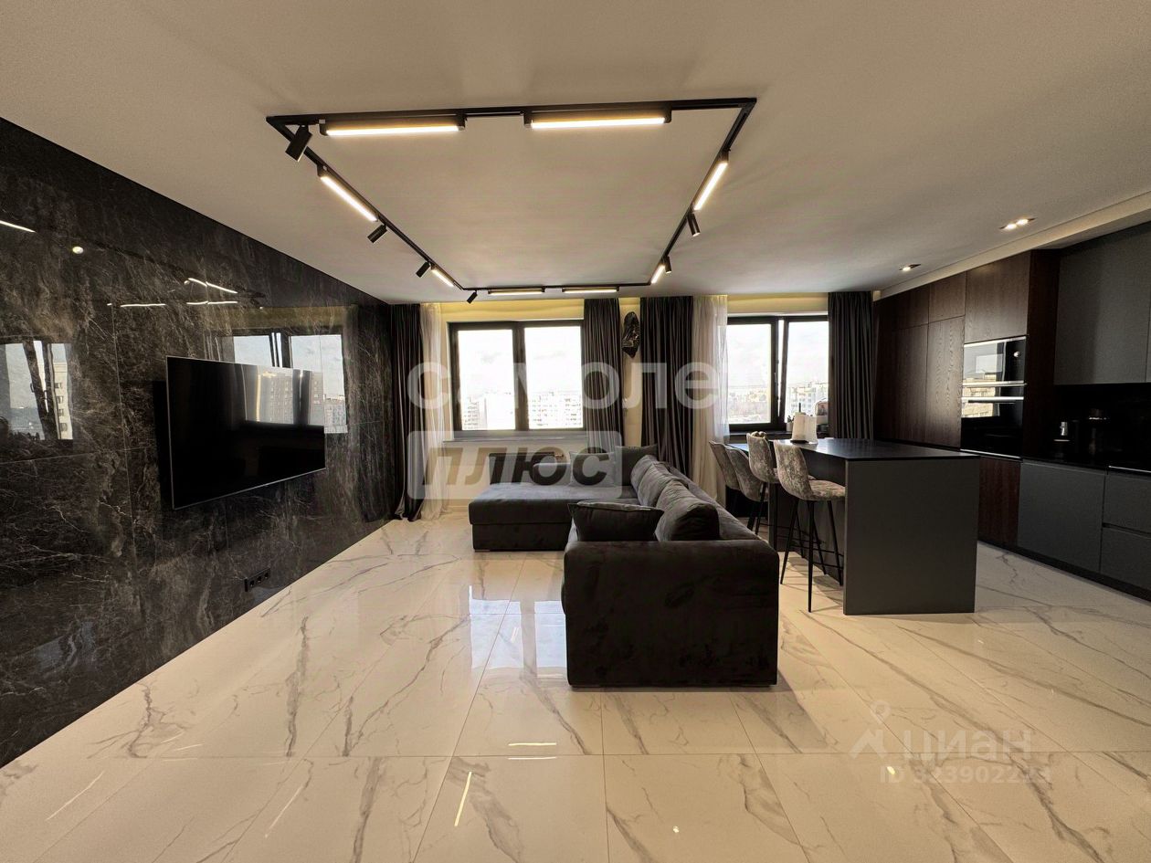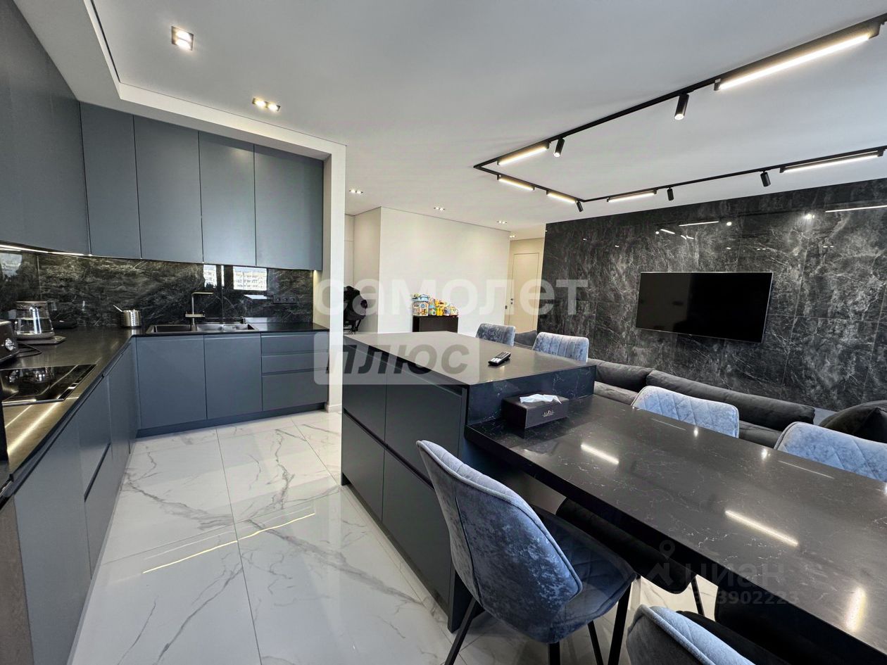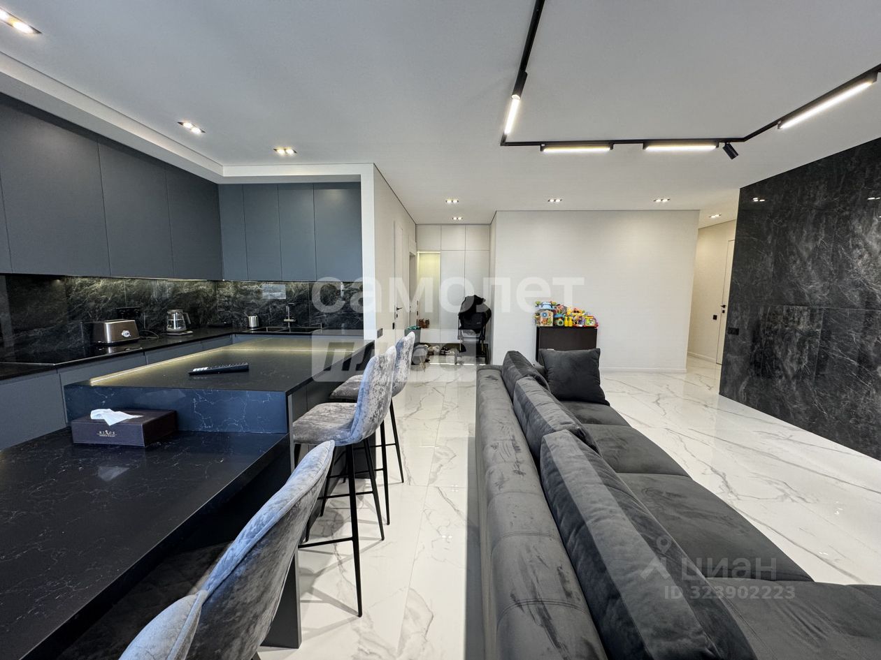 Общая площадь 82 м2 Просторная кухня-гостинная 40 м2 Гардеробная 2 санузла Потолки 2,85 м Застекленный балкон 16-ый этаж с видом на улицу и двор Квартира в дизайнерском стиле, заезжай и живи!