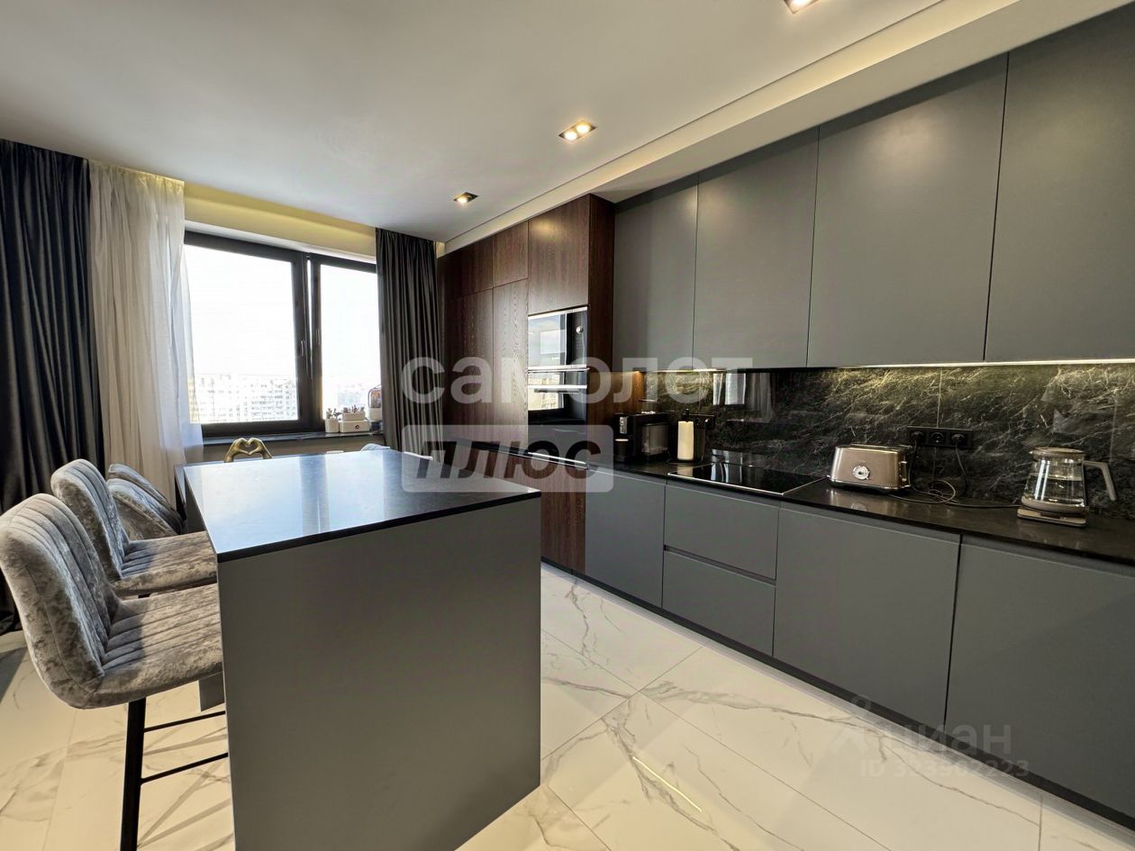 Общая площадь 82 м2 Просторная кухня-гостинная 40 м2 Гардеробная 2 санузла Потолки 2,85 м Застекленный балкон 16-ый этаж с видом на улицу и двор Квартира в дизайнерском стиле, заезжай и живи! Продажа с мебелью и техникой