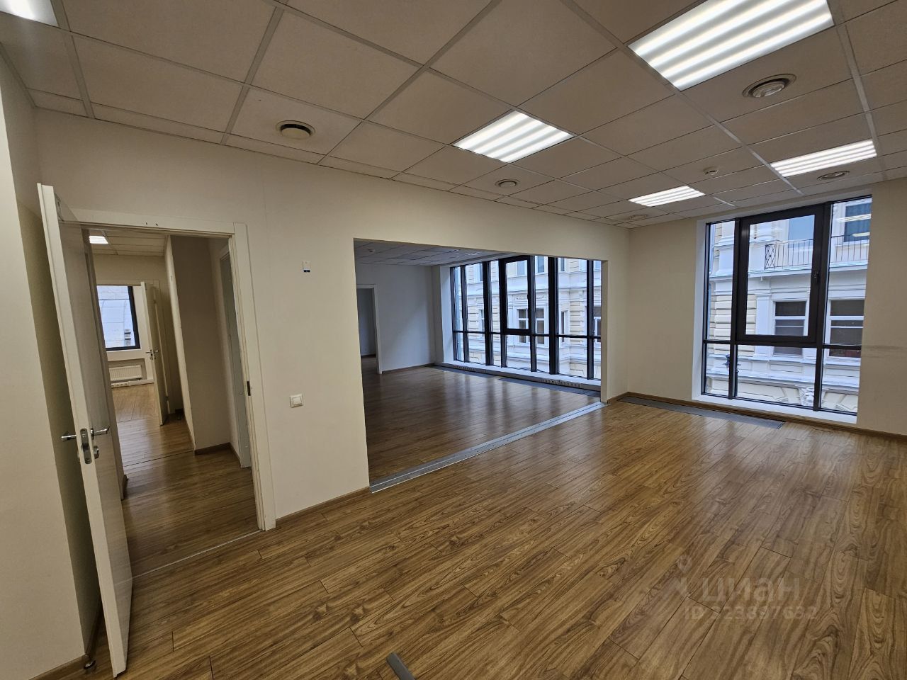 Смешанная планировка (7 кабинетов, переговорная, опенспейс, зона ресепшн), сан узлы в блоке. Помещение состоит из 2х блоков по 145 м2. Офис готов к въезду.