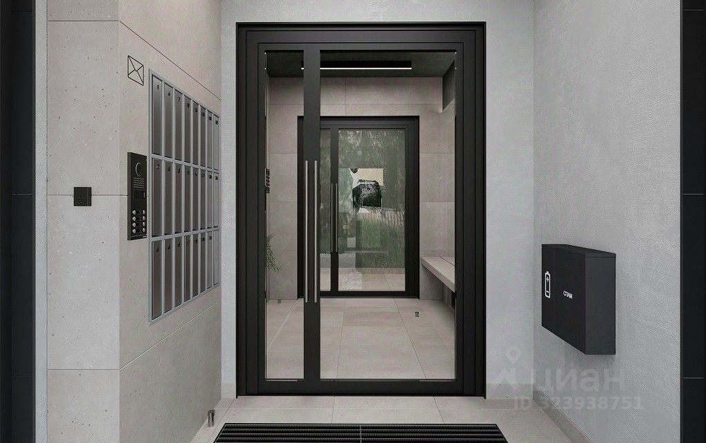 Внутри готова предчистовая отделка: стены оштукатурены и выровнены по общему уровню, на полу слой цементно-песчаного раствора с дополнительным гидроизоляционным слоем в ванной. Проведена электрика и готовы розетки с выключателями. А ещё установлены сейф-двери и счётчики с телеметрией.