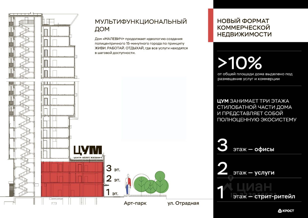 Аренда нежилого помещения площадью 86 кв.м от застройщика в уникальном проекте ЦУМ (Центр Услуг Малевич) - широкоформатный и мультифункциональный кластер услуг, интегрированный в жилое пространство Дома ''МАЛЕВИЧ'', который находится в сердце густонаселенного района Отрадное.