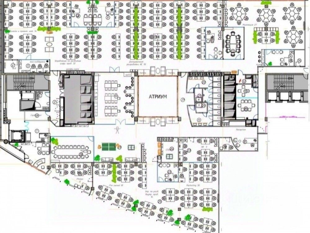 . Третий этаж, много окон, стандартный офисный ремонт, смешанная планировка, приточно-вытяжная вентиляция, кондиционирование, высокие потолки.