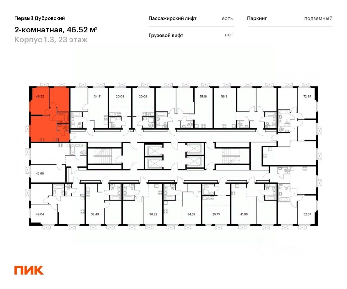 Продаётся 2-комн. квартира площадью 46,52 кв.м на 23 этаже 33 этажного дома (Корпус 1.3, Секция 1) проекта ПИК Первый Дубровский. Светлый просторный подъезд на уровне земли, функциональная планировка, большие окна, c отделкой.