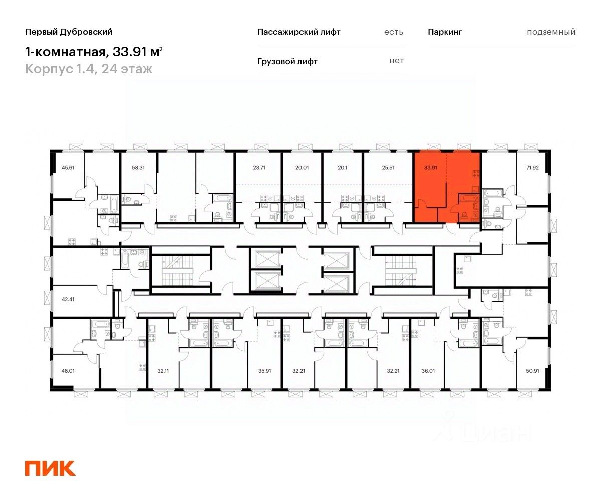 Продаётся 1-комн. квартира площадью 33,91 кв.м на 24 этаже 38 этажного дома (Корпус 1.4, Секция 2) проекта ПИК Первый Дубровский. Светлый просторный подъезд на уровне земли, функциональная планировка, большие окна, c отделкой.
