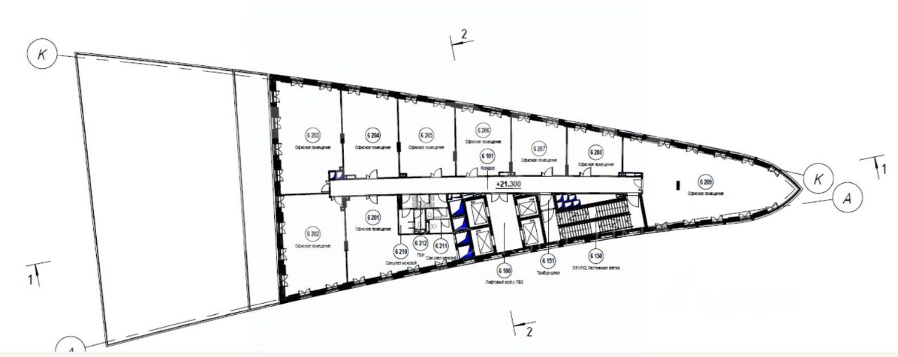 Продажа офиса 131 кв.м на 6 этаже в бизнес-центре ''Эйлер'' по адресу Москва, Заречная улица, вл6/1. Помещение с отделкой. Планировка open-space. Вход общий с улицы.