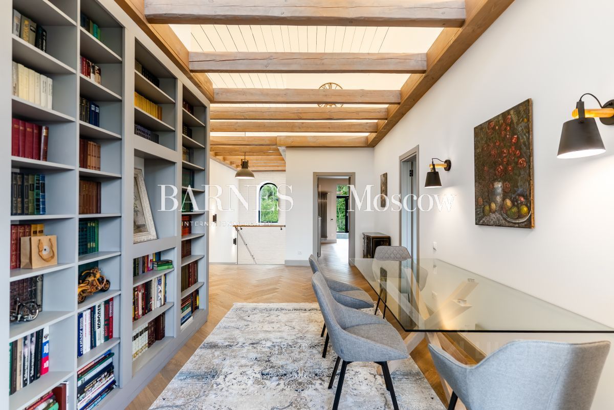 Продается новый дом 439 кв.м. на участке 21 сотка в КП Чистые ключи. 28 км. от МКАД по Киевскому или Калужскому шоссе. Планировка: 1-й этаж: холл, гардеробная, гостиная с камином и с выходом на террасу, кухня-столовая, мастерская-комната свободного назначения, постирочная, гостевой с/у, гараж на 2 м/м. В гараже предусмотрена мойка машин (установлено два водяных крана и слив в полу в канализацию), 2-й этаж: 4 спальни с индивидуальными с/у и гардеробными, библиотека, зимний сад. Цоколь: лифт, щитовая, винный шкаф, вход в полуподвал.Коммуникации: газ магистральный - прямой договор, электричество 15 квт, водоснабжение и канализация централизованные, отопление: 1 этаж по всей площади теплый водяной пол + напольные конвекторы, 2 этаж - немецкие настенные батареи + напольные конвекторы. Конструктив дома: материал стен: Голицинский кирпич с утеплением, толщина стен примерно 100 см, облицовка стен: все архитектурные элементы (русты, пояс, наличники окон и дверей), фасадная клинкерная плитка - White Hills. Монтаж произведен компанией завода производителя. На участке парковка на 4 м/м, подготовлены условия для строительства СПА/бани (предусмотрено электричество от основного щита, подготовлена площадка под строительство). Участок ровный, прилесной, с ландшафтными работами: завезен плодородный грунт, сделан дренаж участка, посажен и перезимован в течении трех лет фруктовый сад, декоративные деревья и цветущие кусты, сделано разновидное освещение фасада дома, установлено освещение участка, смонтирован автополив Hunter, установлено видеонаблюдение по всему участку (9 камер), сделано мощение дорожек брусчаткой Вайт Хилс на бетонном основании. Участок огорожен. Фундамент забора - бетон шириной 40 см, столбы - бетон, облицовка клинкерный кирпич Вайт Хилс, между столбами доски. На границе участка протекает приток реки Десна. За границей участка отсыпан декоративный остров, построен мостик, соединяющий участок дома и остров, который окружен с обеих сторон притоками реки.