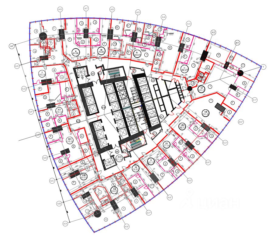 - Деление на 12 офисных блоков с отделкой,