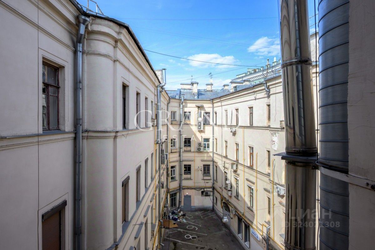 Высокие потолки 3,6 метра, частично сохранена оригинальная лепнина. На полу сохранился оригинальный дореволюционный паркет. Большие окна выходят на Покровку, сквер у памятника Н. Г. Чернышевскому и Чистопрудный бульвар, окна кухни выходят во двор.