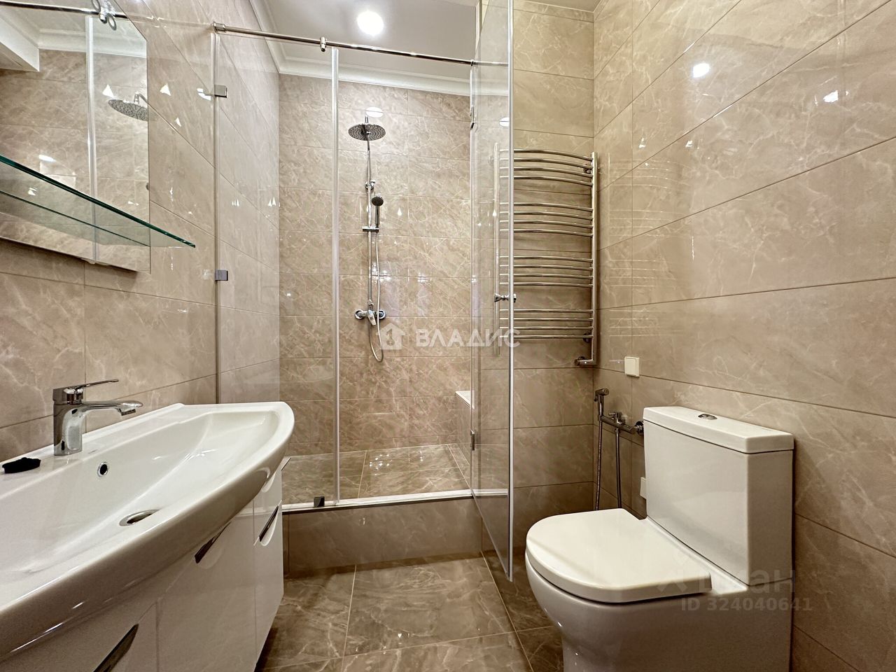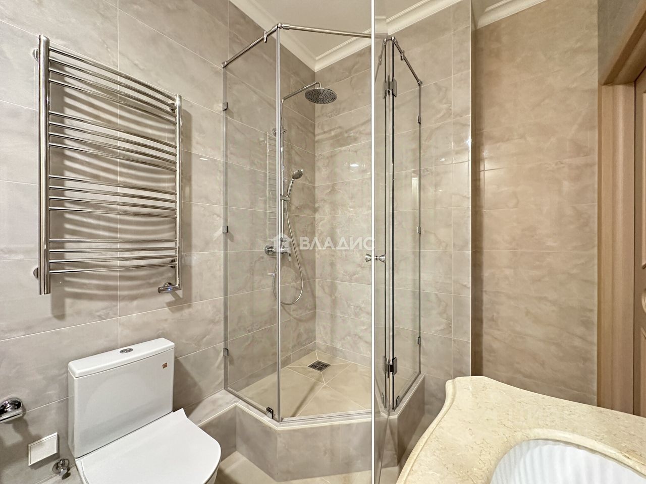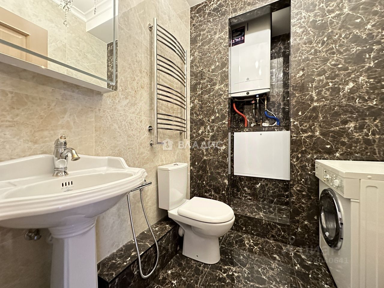 - В санузлах пол и стены из керамогранита производство Kerama Marazzi