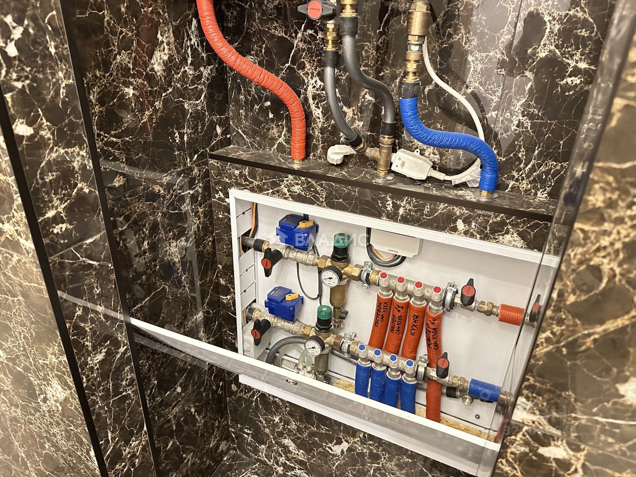 - Коллекторная система подачи холодной и горячей воды трубами REHAU