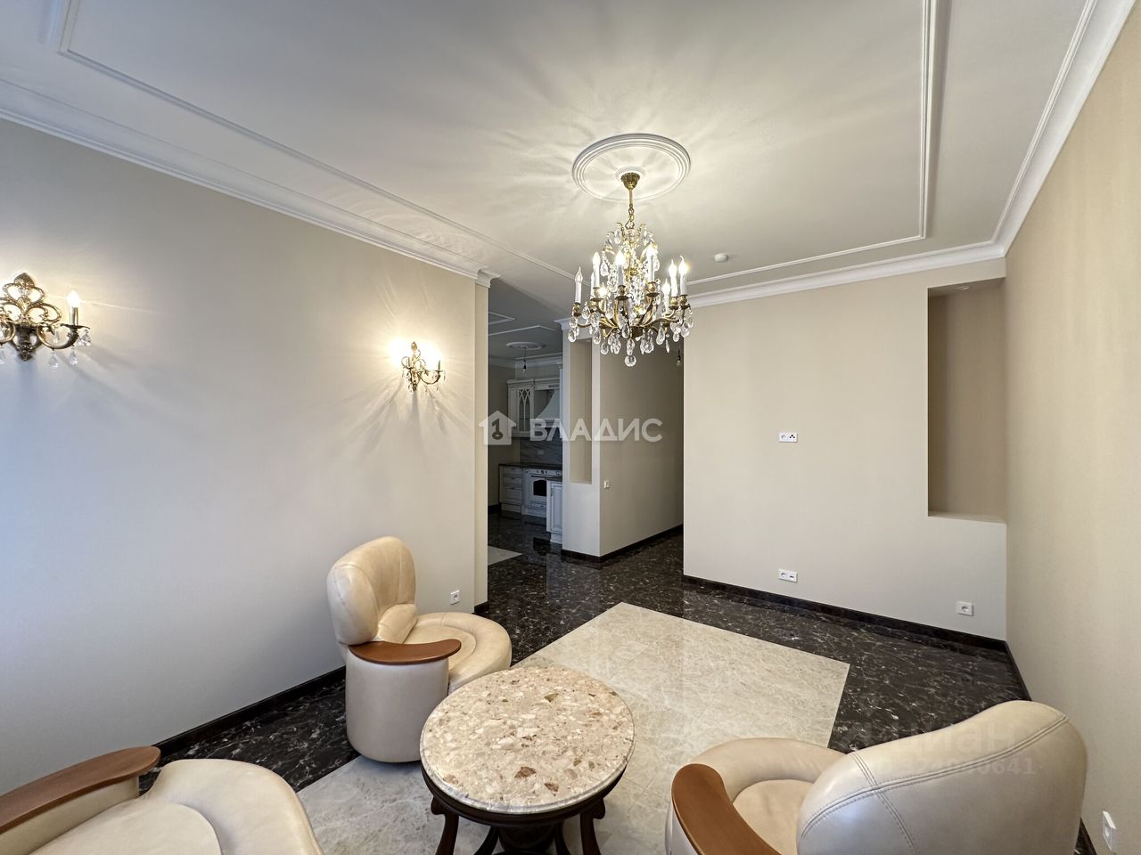 - Мебель в комнатах и люстры европейского производства (Италия, Испания)