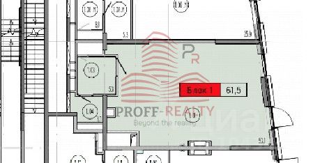 Предлагаем в аренду коммерческое помещение площадью 61,5 кв.м., расположенное на первом этаже корпуса 1 премиального жилого комплекса ''СОЮЗ''.