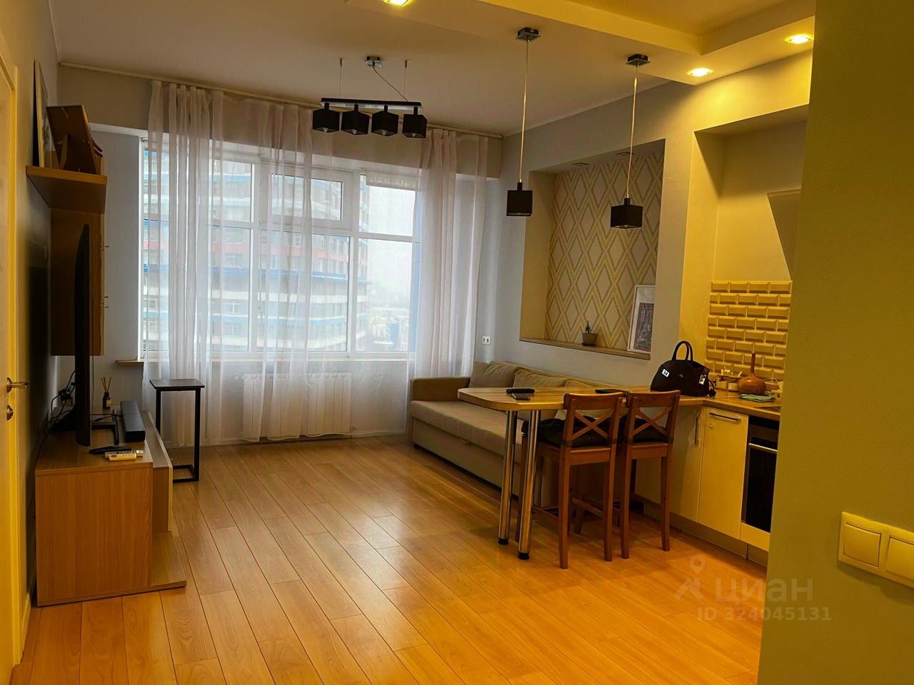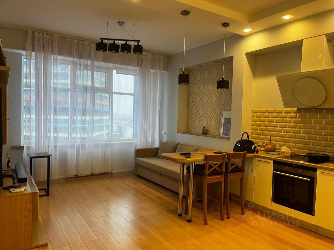 в ЖК ''ТРИКОЛОР'' продается светлая уютная евродвухкомнатная квартира (кухня-столовая-гостинная 25 кв.м. и 1 изолированная комната с гардеробной 20 кв.м.). Панорамный вид из окна. В подьезде 3 лифта. Огороженная территория, в ЖК магазины, услуги быта, фитнес word CIass/