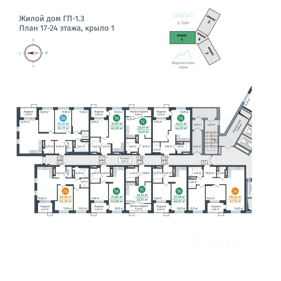 Это первый в Тюмени проект с принципиально новой организацией общественных зон. Три лепестка здания сходятся в большое пространство лифтового холла-вестибюля с зоной рецепции. По желанию жителей, здесь можно организовать консьерж-службу.