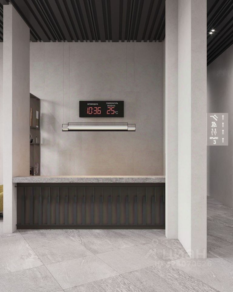 Это первый в Тюмени проект с принципиально новой организацией общественных зон. Три лепестка здания сходятся в большое пространство лифтового холла-вестибюля с зоной рецепции. По желанию жителей, здесь можно организовать консьерж-службу.