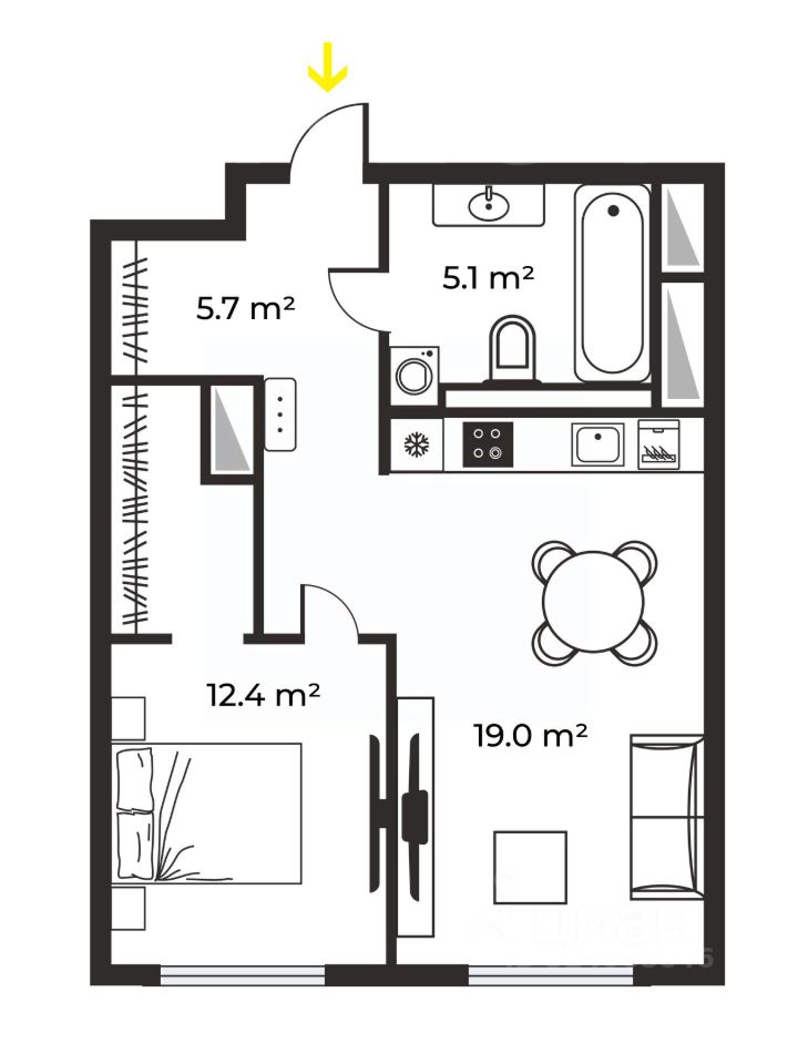 Предлагаются видовые апартаменты 44 м² в комплексе бизнес-класса Only (Онли)