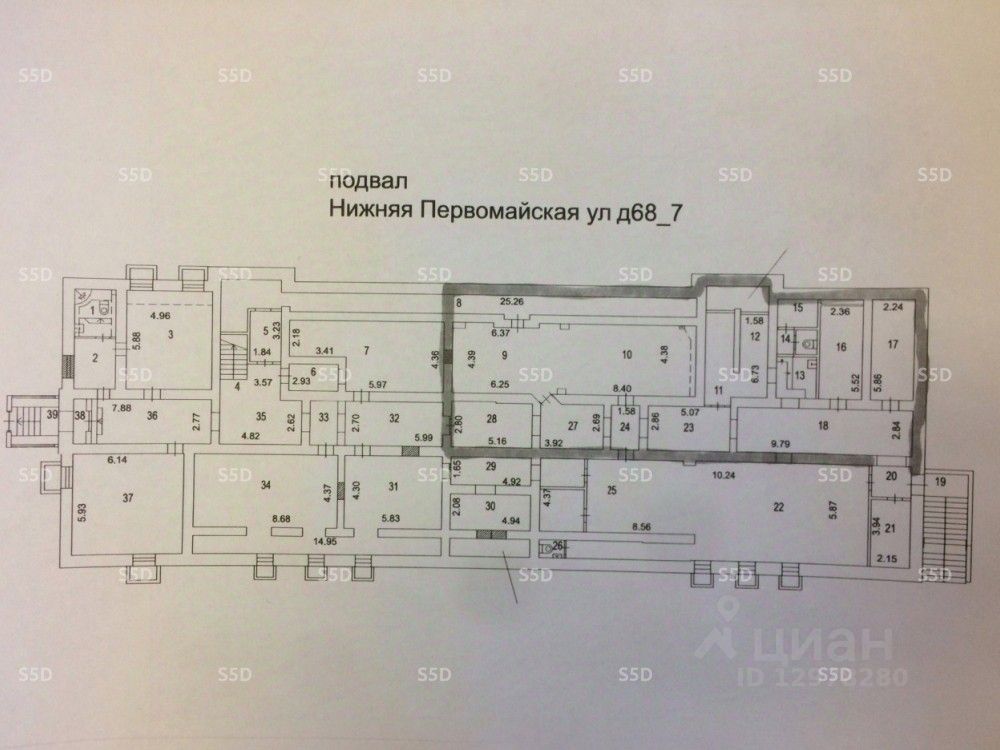 Подвальное помещение в 5-этажном жилом доме, площадью 600 кв.м, вся площадь в одном уровне. Высота потолков 2.7 метра. Имеются все необходимые городские коммуникации, ГВС, ХВС, отопление. Два отдельных входа. Бесплатная парковка перед зданием.