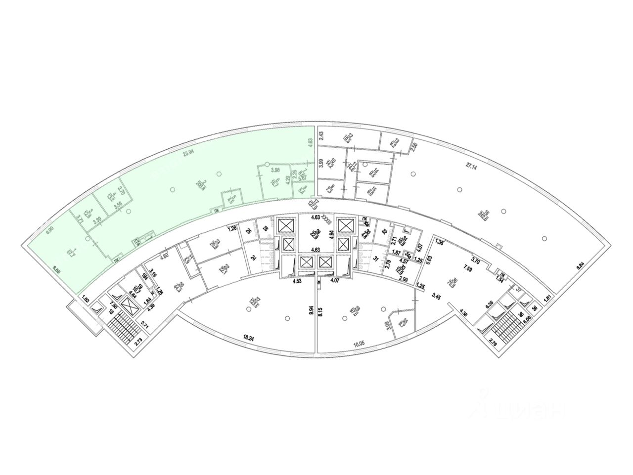Офисное помещение 333.9 кв. м в бизнес-центре ''Алексеевская Башня''.