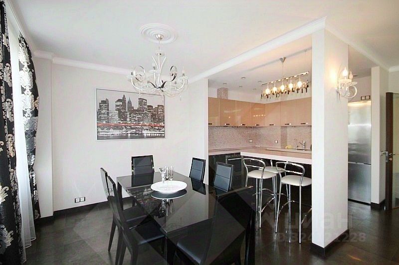В квартире выполнен эксклюзивный ремонт по индивидуальному дизайн-проекту. Планировка: кухня, гостиная, две спальни, два санузла, две гардеробные комнаты, балкон.