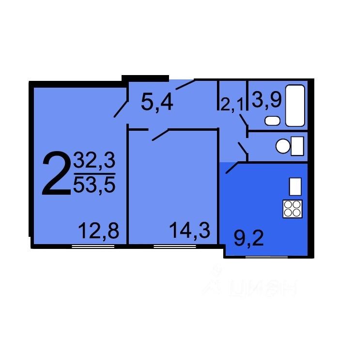 Продается отличная двухкомнатная квартира 53,5 кв.м., комнаты 14,3 кв.м. и 12,8 кв.м., кухня 9,2 кв.м. с лучшим местом расположения в районе, согласно приложенной планировке. Серия дома П3, этаж 7/17 этажного дома. Дом очень ухоженный, как и сам район Крылатское, вокруг дома всегда есть места для парковки.
