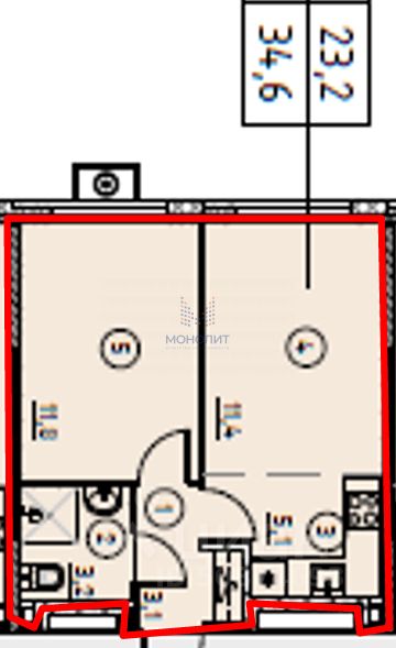 О КВАРТИРЕ: - Общая площадь 34,6 м², - Окна во внутренний двор, - Этаж 3/23.