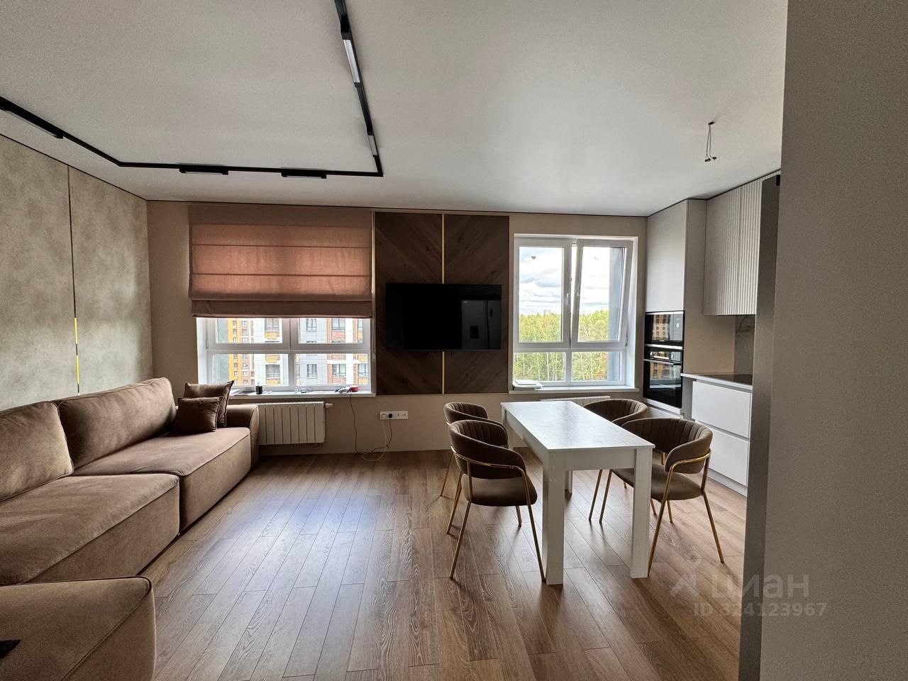 Продается шикарная квартира с евроремонтом, встроенная кухня с техникой LG, пол плитка/ламинат, 2с/у, 2 спальни (12+12м), кухня гостиная 22м, гардеробная.