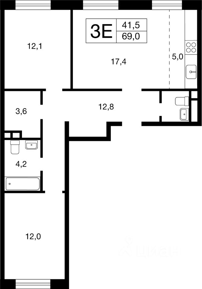 Продается шикарная квартира с евроремонтом, встроенная кухня с техникой LG, пол плитка/ламинат, 2с/у, 2 спальни (12+12м), кухня гостиная 22м, гардеробная.