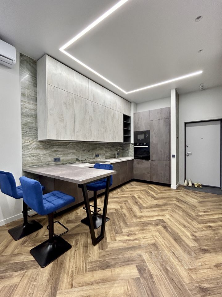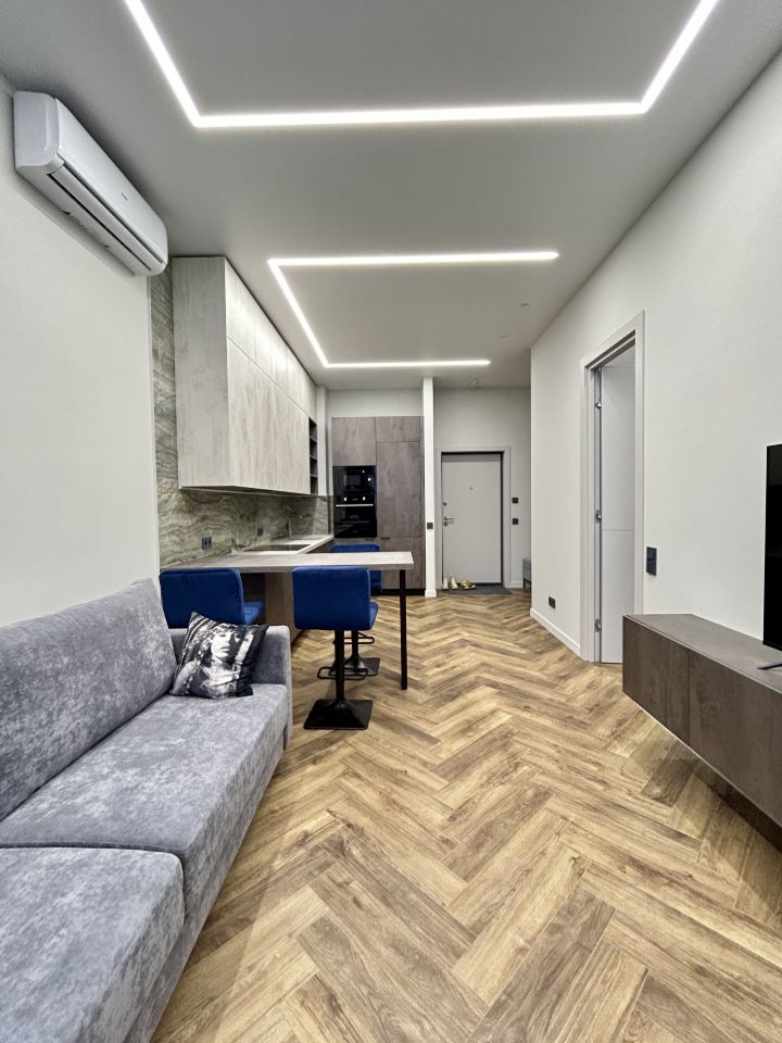 Планировка и оснащение: — Изолированная спальня с большим шкафом-купе и двуспальной кроватью — Кухня-гостиная с зоной отдыха и обеденной зоной — Просторный совмещённый санузел — Новая мебель — Новая техника: ПММ, СМА, кондиционеры
