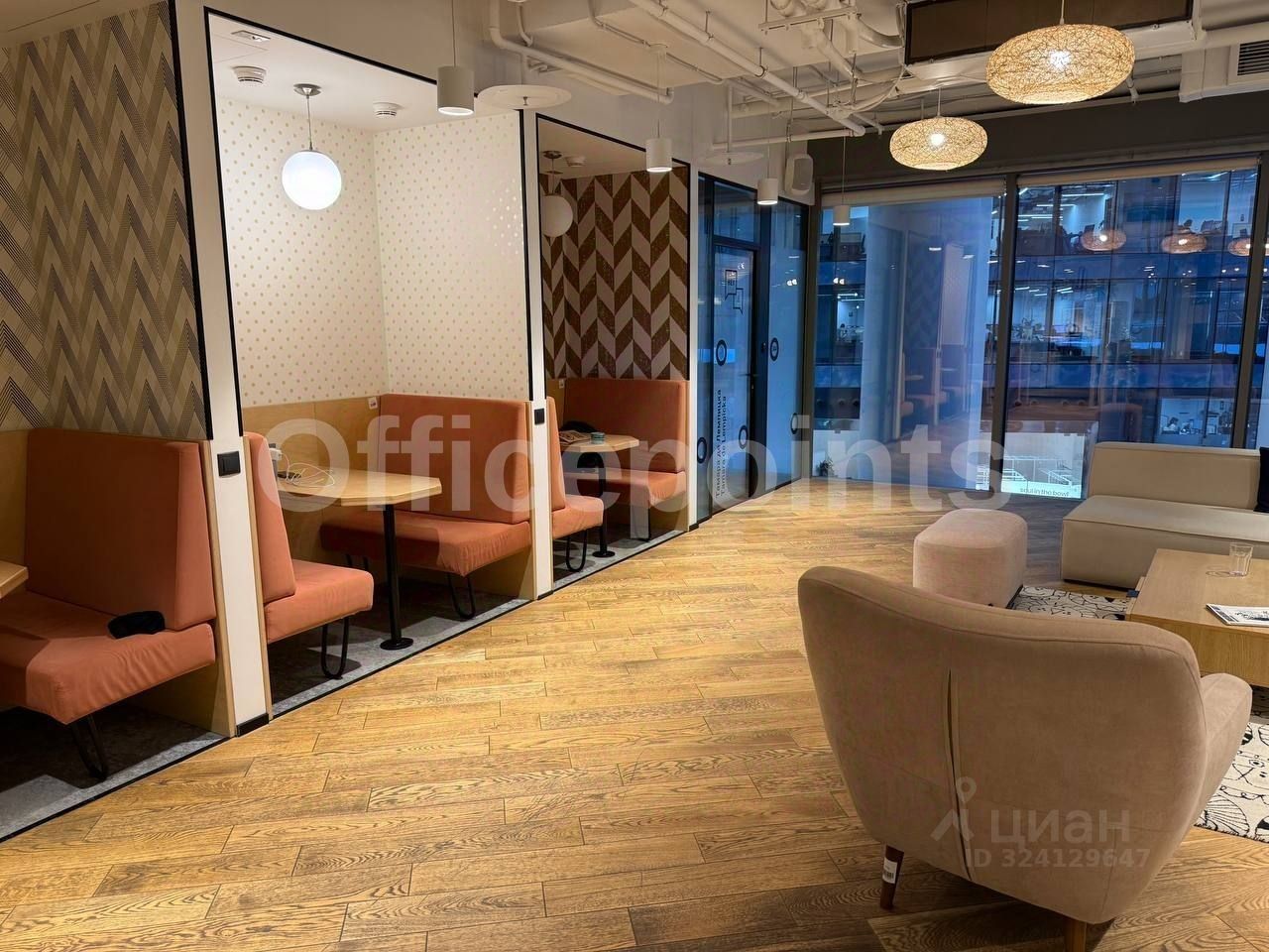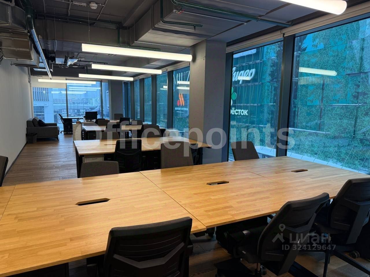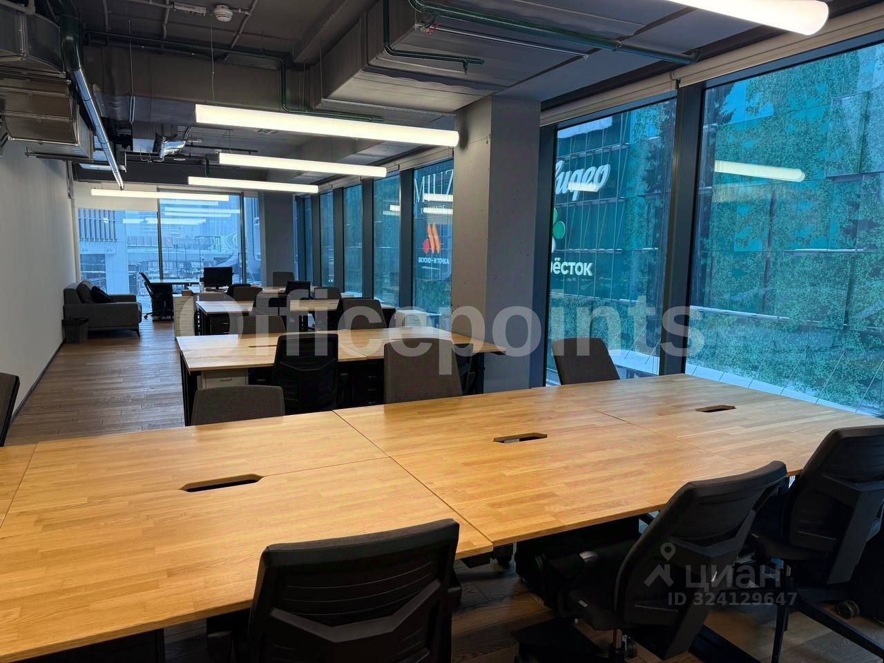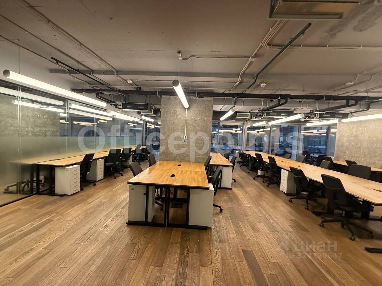 В помещении выполнена качественная офисная отделка, смешанная планировка. Комплектация офисной мебелью. 29 рабочих мест. Центральная система кондиционирования и приточно-вытяжная система вентиляции. Панорамные окна. В наличии подземная парковка (36 000 руб. в месяц за м/место).
