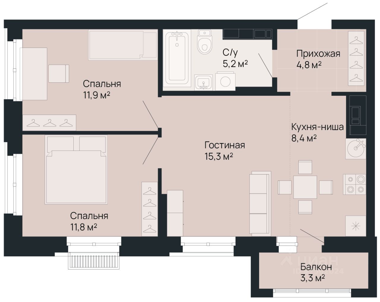 Общая площадь58,4 м2