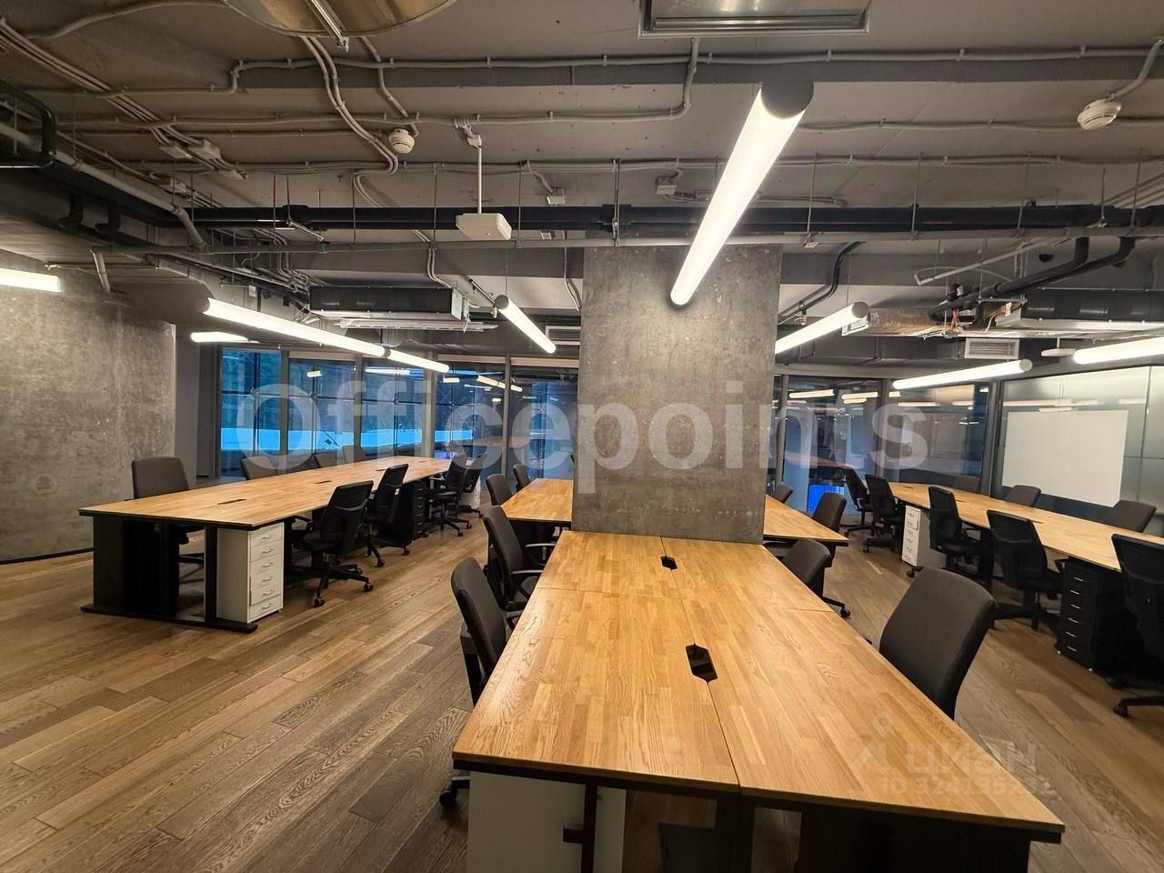 В помещении выполнена качественная офисная отделка, смешанная планировка.