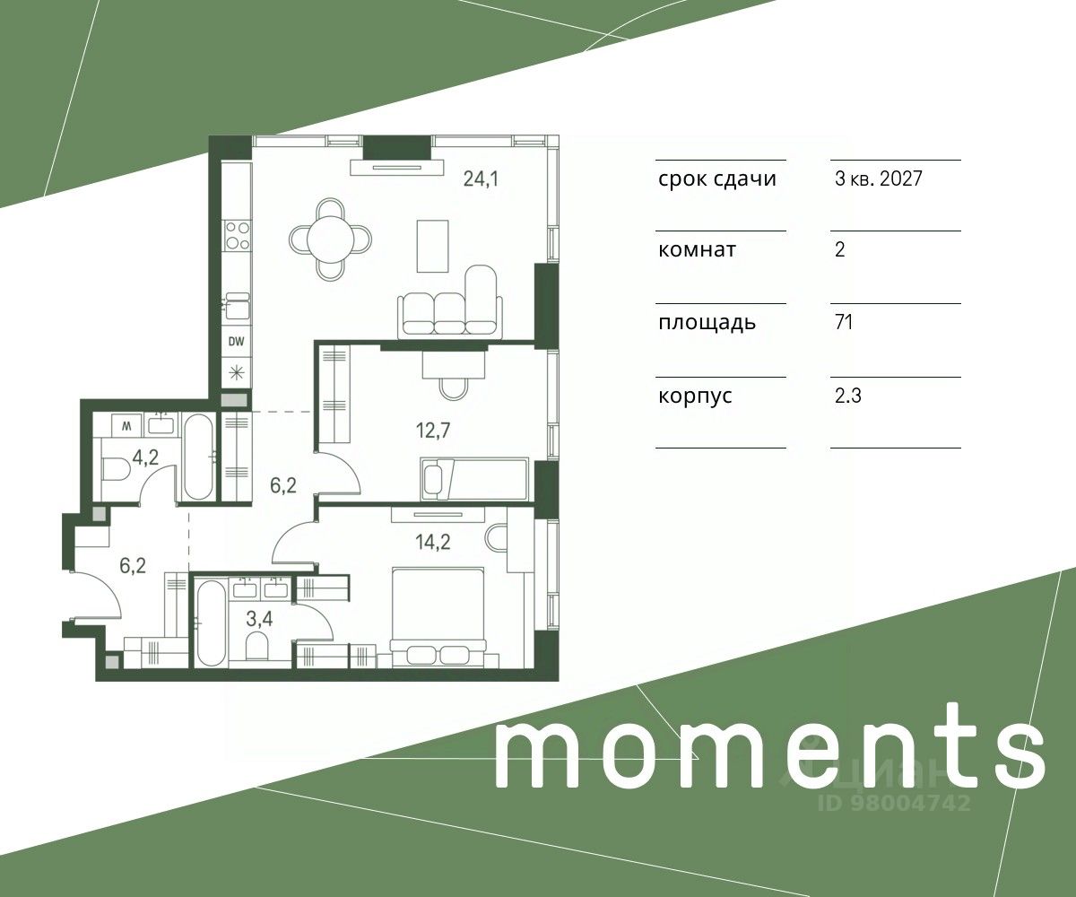 продам 2-к, Моментс ЖК, 2.134 807 608 ₽