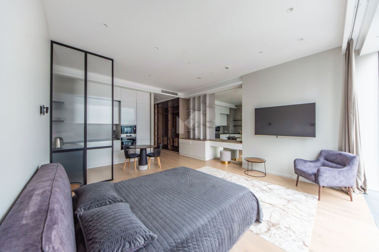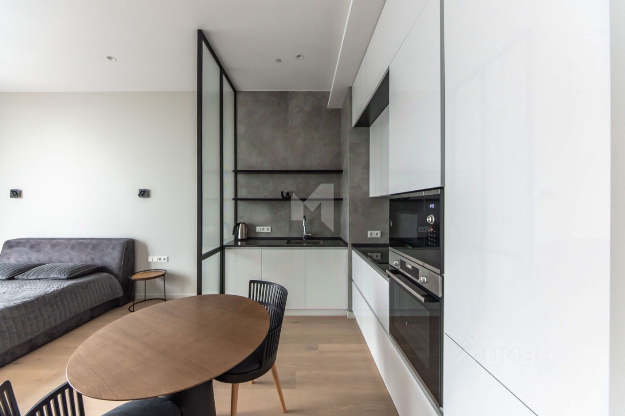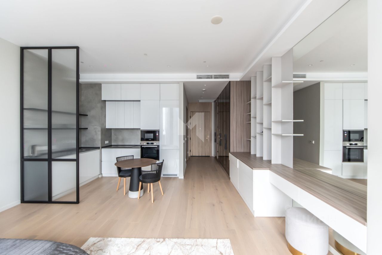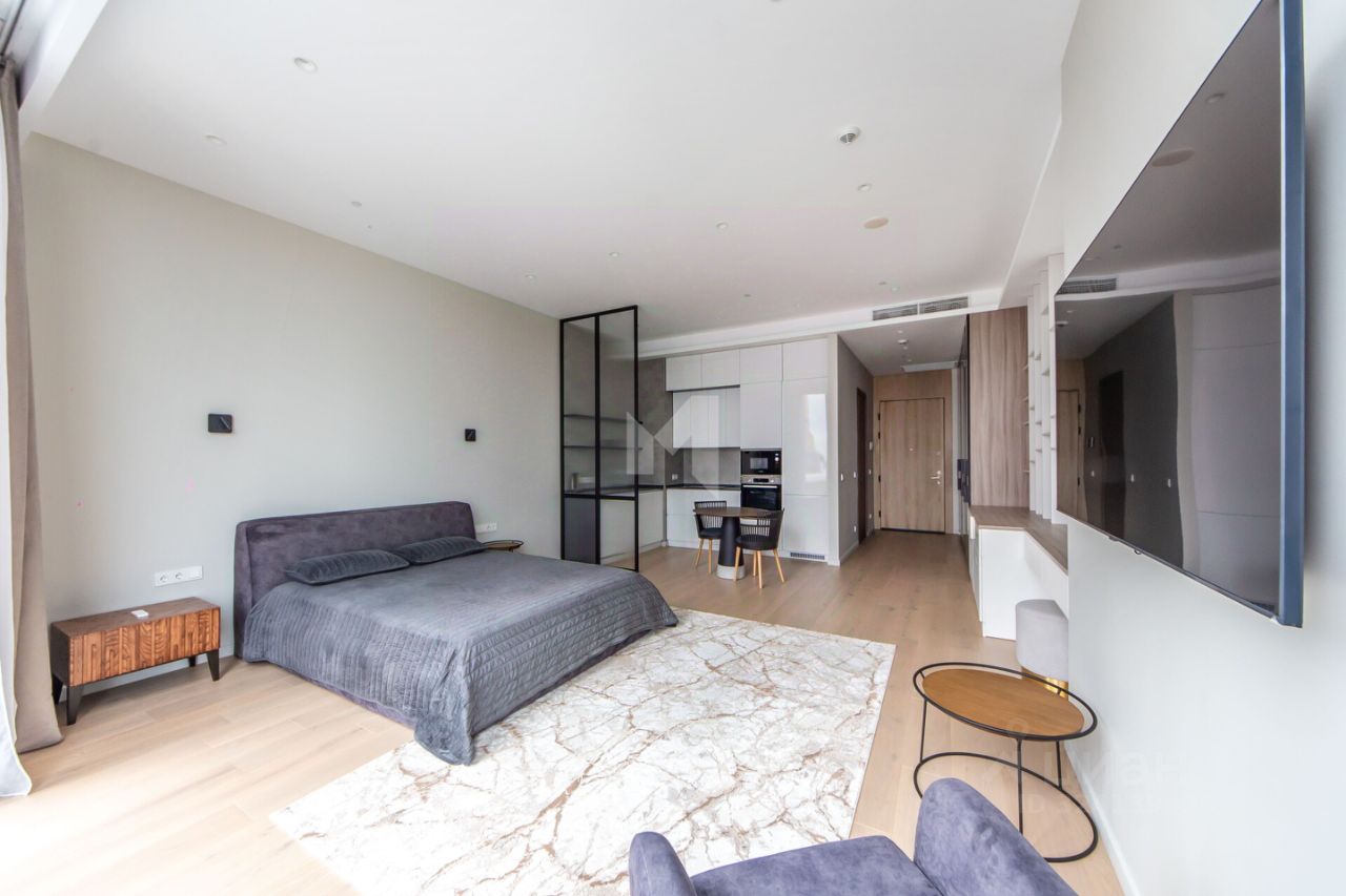 В апартаменте есть зонирование кухонной и общей зоны, предусмотрено рабочее место, спланирован большой санузел, много места для хранения. Все оформлено с вниманием к деталям, что подчеркивает функциональность и эстетическое восприятие пространства. Апартамент-студия полностью меблирован, а на кухне установлена современная техника, что позволяет вам сразу заехать и наслаждаться комфортом.