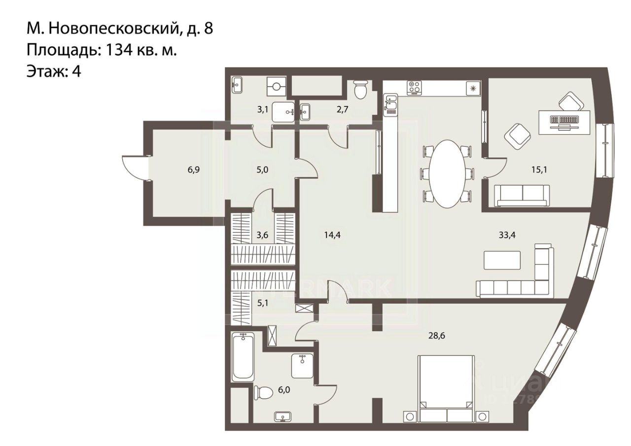 ID 61120: ЖК Дом на Смоленской набережной. Готовая квартира к проживанию трехкомнатная в жилом комплексе премиум-класса Дом на Смоленской набережной в районе Арбата.