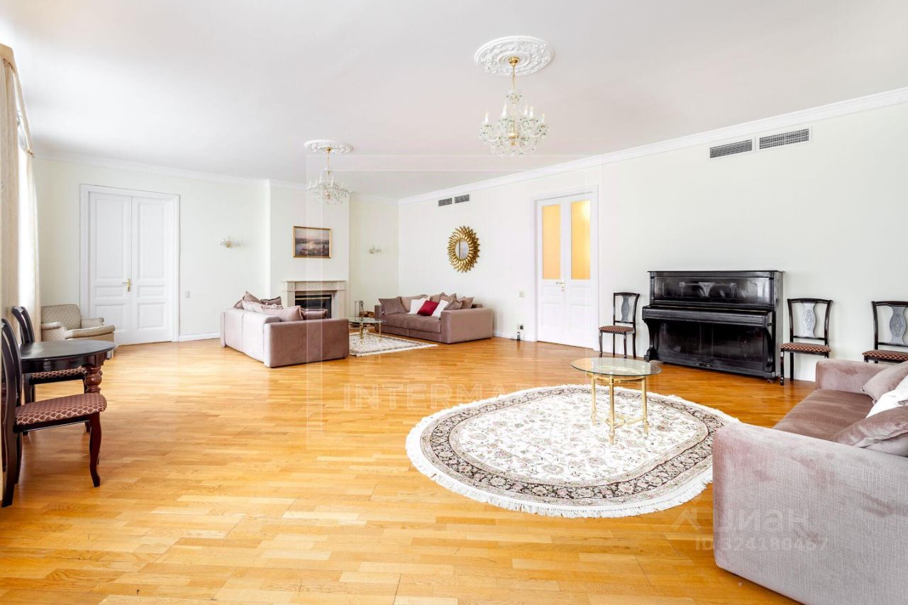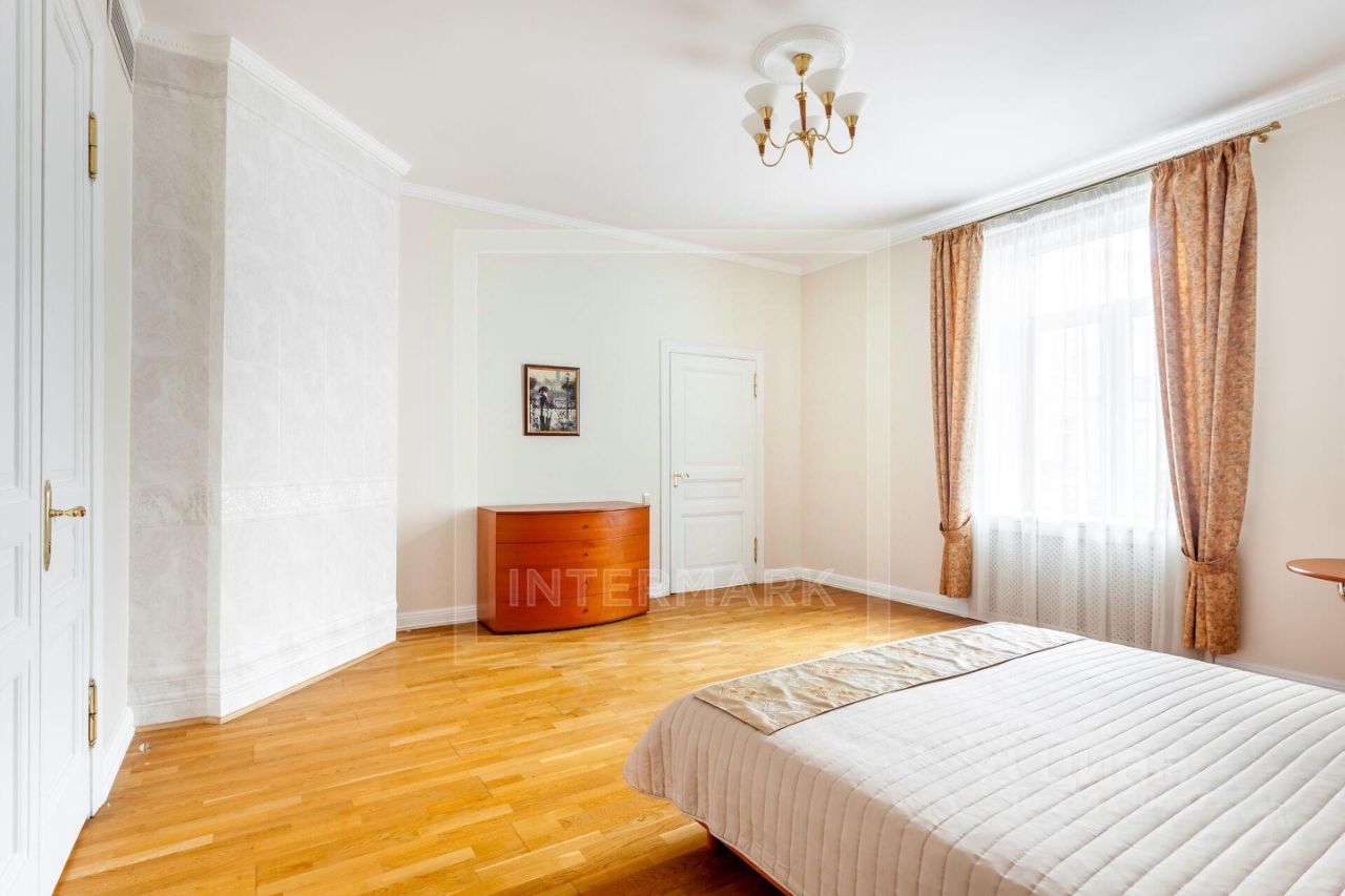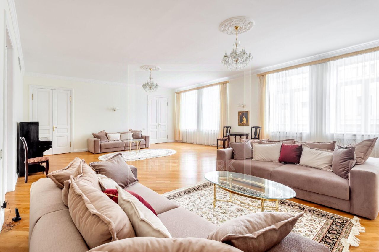 ID 10155: Освобождается с 26 ноября 25го! Семейная 6-комнатная квартира в историческом доме, в самом центре Москвы. Выполнен качественный ремонт в светлых тонах. Квартира предлагается полностью оборудованной всей необходимой бытовой техникой, как с мебелью, так и без мебели. Квартира оснащена кондиционированием, бойлером, высокоскоростным интернетом, спутниковым телевидением, установлены посудомоечная и стиральная машины, есть подогрев полов, действующий камин, ванна с джакузи, видеодомофон. Общая площадь 340 кв. м. Планировка: просторная гостиная комната, столовая, 5 спален, отдельная кухня с выходом на черный ход, холл, постирочная, 2 ванные комнаты, гостевой туалет, гардеробная комната, дополнительное помещение - комната для хранения вещей 9 кв.м.