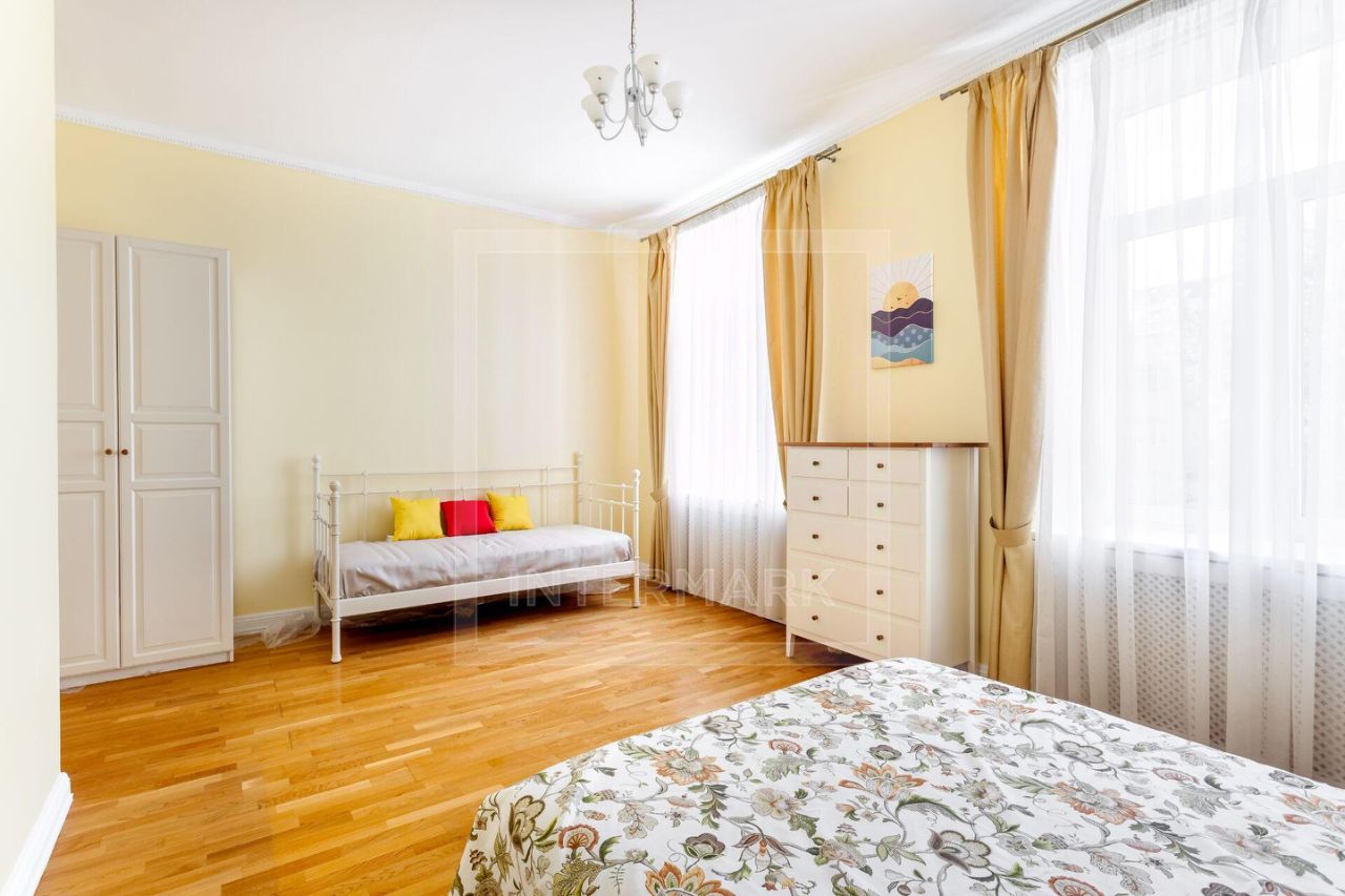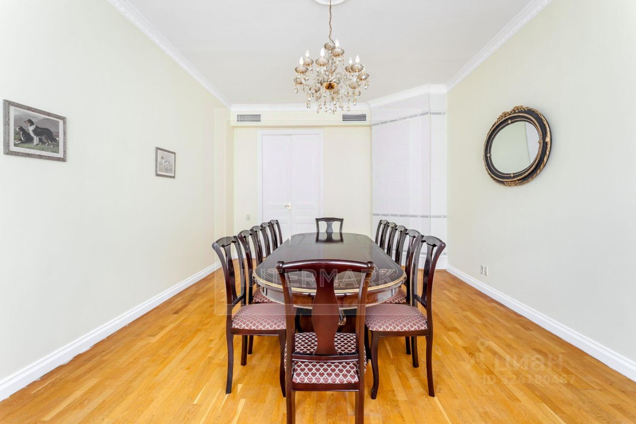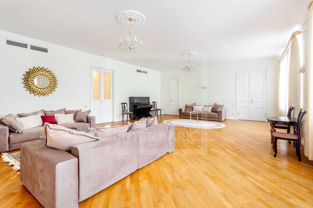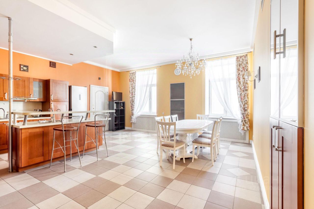 ID 10155: Освобождается с 26 ноября 25го! Семейная 6-комнатная квартира в историческом доме, в самом центре Москвы. Выполнен качественный ремонт в светлых тонах. Квартира предлагается полностью оборудованной всей необходимой бытовой техникой, как с мебелью, так и без мебели. Квартира оснащена кондиционированием, бойлером, высокоскоростным интернетом, спутниковым телевидением, установлены посудомоечная и стиральная машины, есть подогрев полов, действующий камин, ванна с джакузи, видеодомофон. Общая площадь 340 кв. м. Планировка: просторная гостиная комната, столовая, 5 спален, отдельная кухня с выходом на черный ход, холл, постирочная, 2 ванные комнаты, гостевой туалет, гардеробная комната, дополнительное помещение - комната для хранения вещей 9 кв.м.