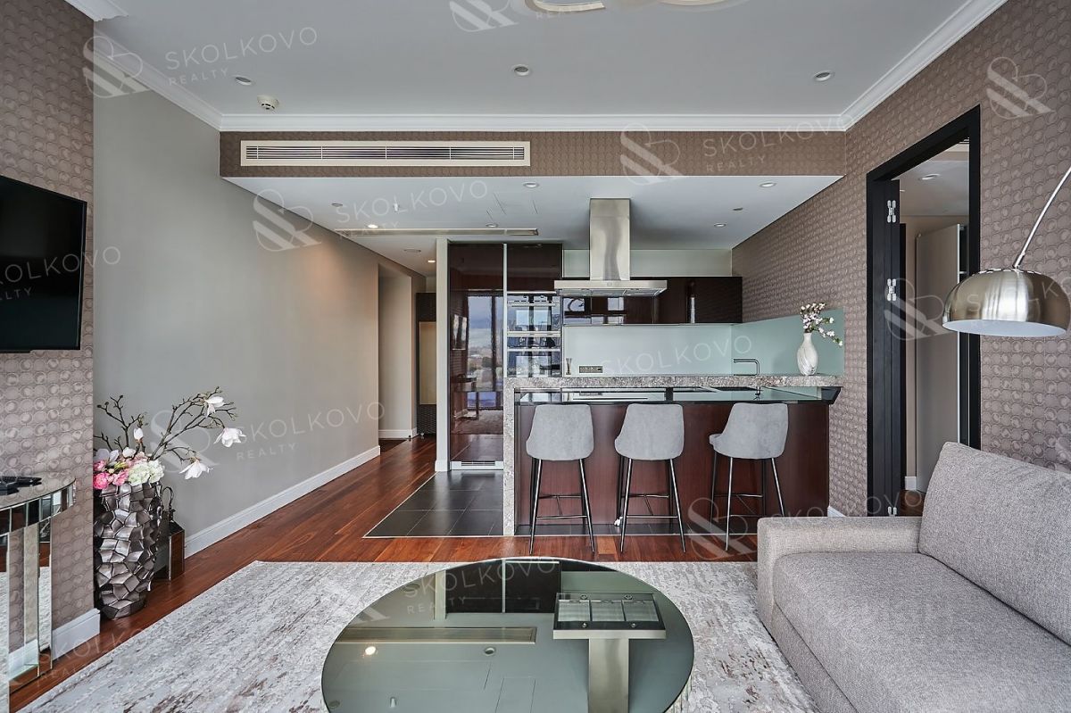 Находясь на 15 этаже, вы сможете наслаждаться захватывающими панорамными видами на столицу. Просторная гостиная совмещена с кухней, что создает идеальную атмосферу для отдыха и общения. Просторная спальня с кроватью king-size гарантирует максимальный комфорт для вашего сна, а гардеробная комната обеспечит удобство в организации ваших вещей.