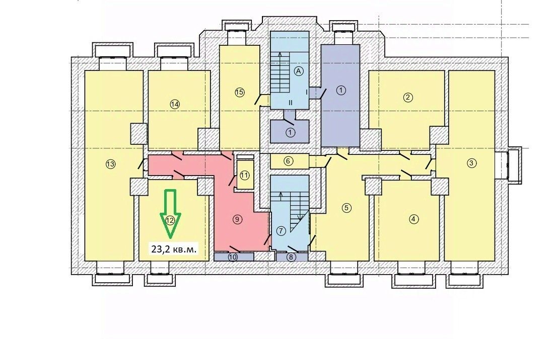в помещении высокие потолки. Санузел общий на этаж.